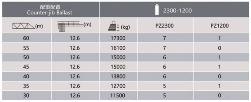 獨立高度***臂長的自重(不含平衡重,不含壓重)