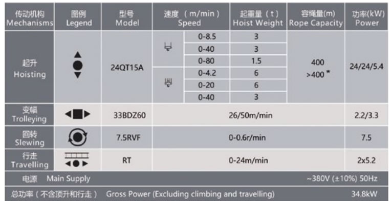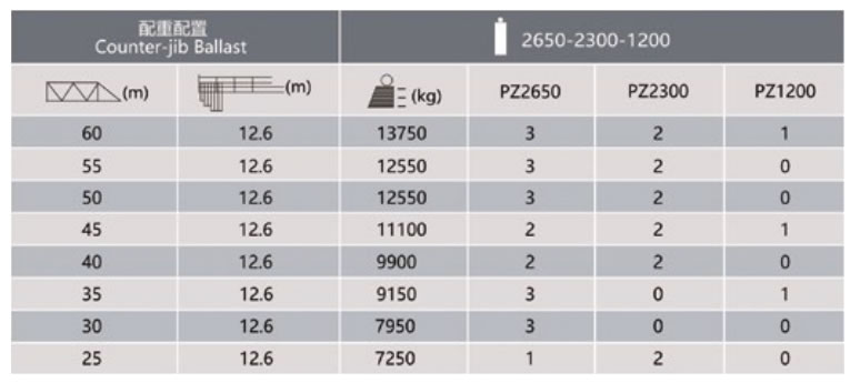 獨立高度***臂長的自重(不含平衡重,不含壓重)