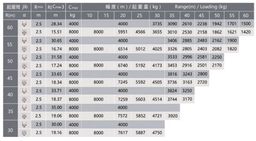 獨立高度***臂長的自重(不含平衡重,不含壓重)
