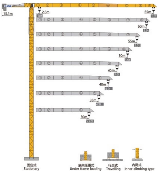 獨立高度***臂長的自重(不含平衡重,不含壓重)