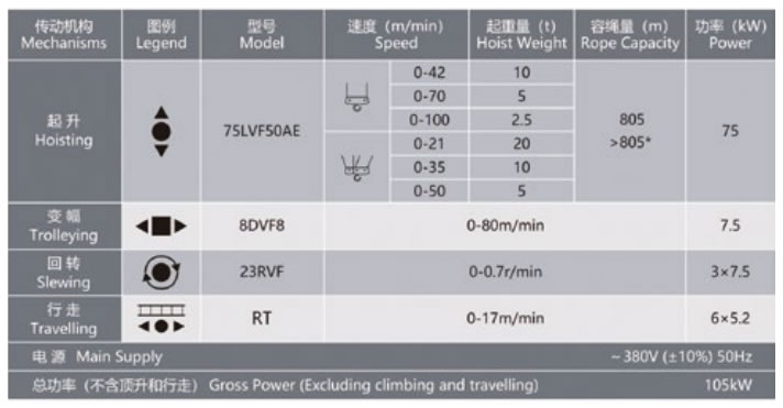 獨立高度***臂長的自重(不含平衡重,不含壓重)